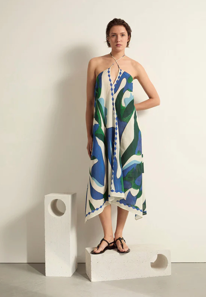 El vestido Ivina sin espalda es uno de los diseños icónicos de Mare di Latte. Sus líneas depuradas y su escote ajustable lo convierten en un vestido elegante y femenino. También disponible en seda o estampado.