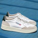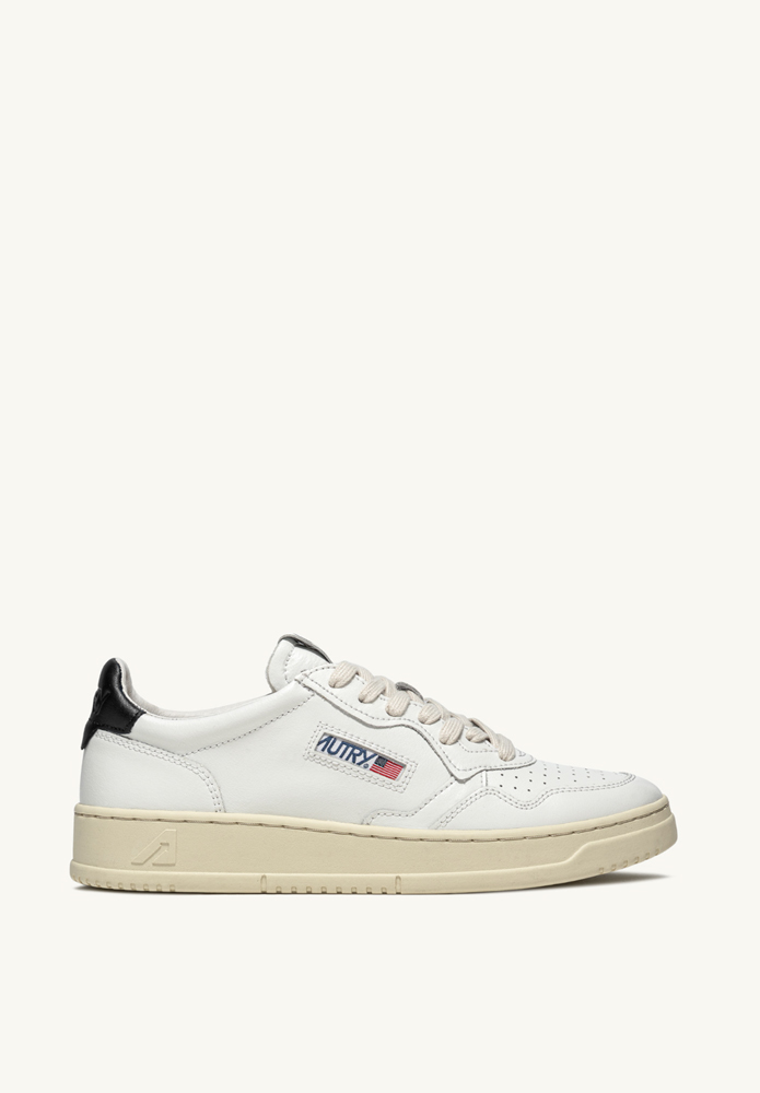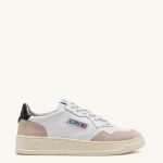 Estas zapatillas para mujer están confeccionadas en suave piel blanca de aspecto auténtico y acabadas con refuerzos de ante beige para una mezcla táctil y gráfica. El detalle de piel negra que decora el talón está personalizado con el logotipo de Autry.
