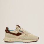 Estas zapatillas para mujer están confeccionadas en suave piel blanca de aspecto auténtico y acabadas con refuerzos de ante beige para una mezcla táctil y gráfica. El detalle de piel negra que decora el talón está personalizado con el logotipo de Autry.